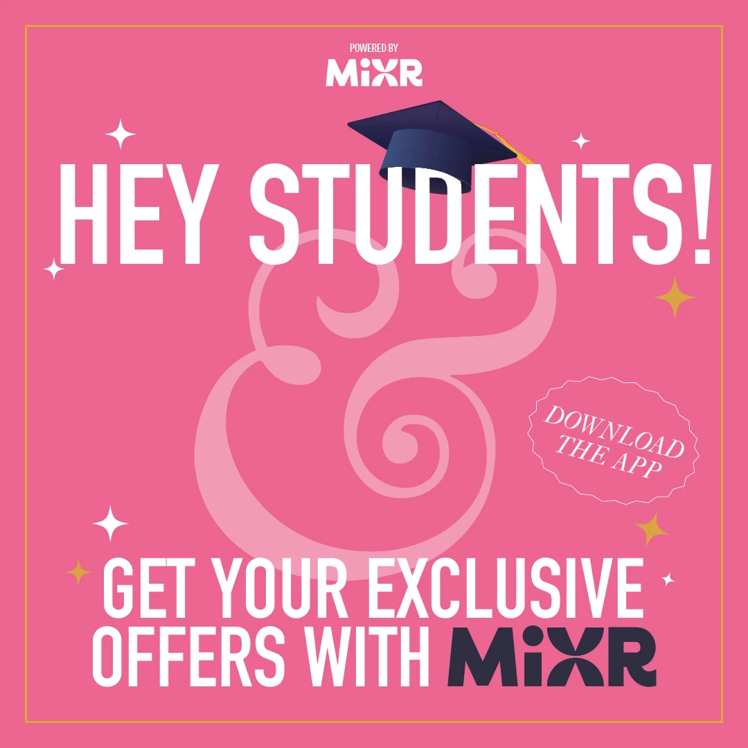 Download the MiXR app now to enjoy exclusive student deals. From student drink offers on all your fave drinks, including cocktails, pints, shots and bombs, to bottomless brunch/boozy brunch* for £20 per person. Be sure to get involved in all the exclusive offers to save, sip and slay through student life! Perfect deals every term so you can lecture by day and party by night!